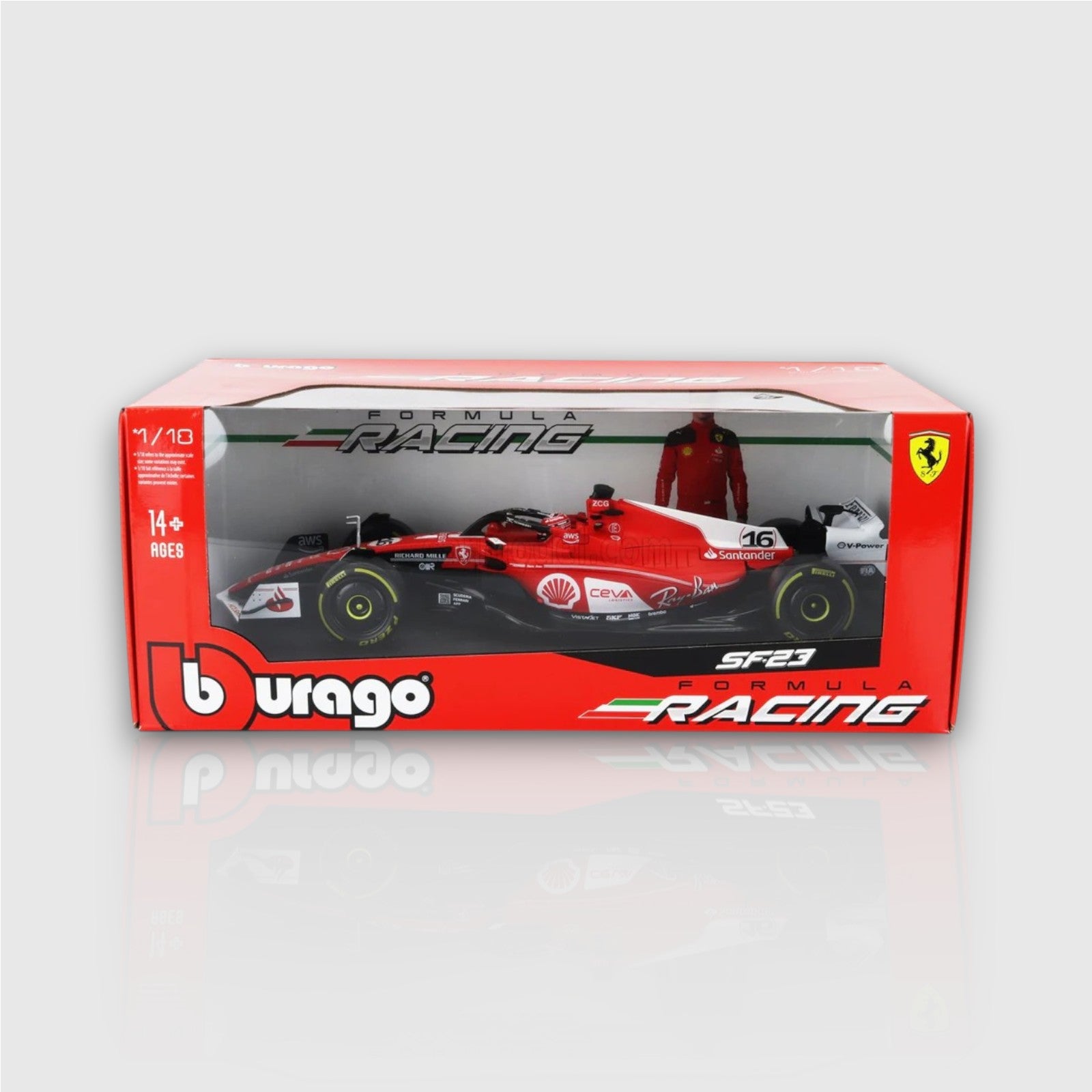 : At 1:18 scale, this model captures the full essence of the Ferrari SF23, with impressive size and detail that brings the excitement of Formula 1 racing right into your hands.
