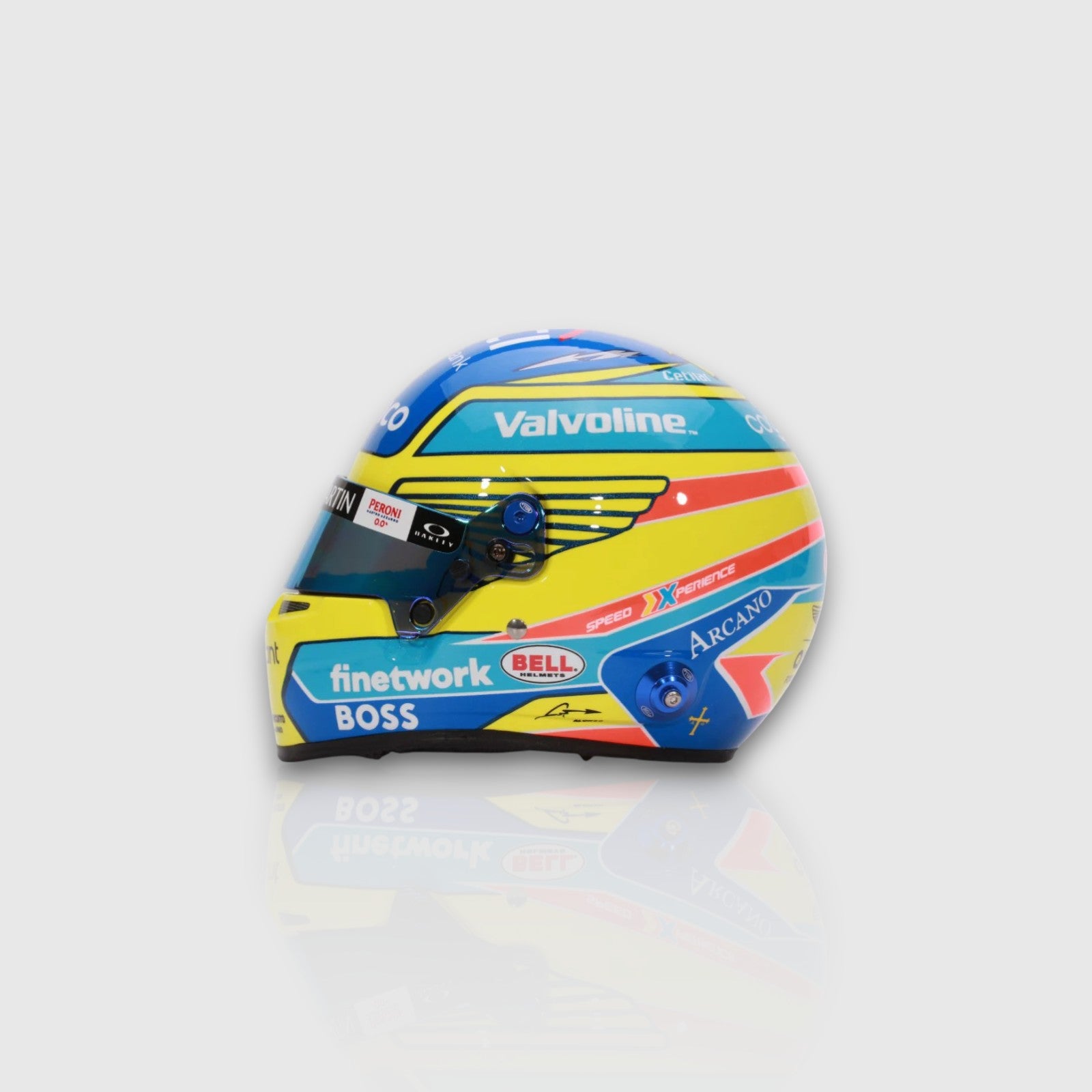 Each helmet is sculpted with precision, capturing the aerodynamic contours and unique artwork that Alonso sported throughout the season. The eye-catching graphics, including the bold patterns and signature sponsor logos, are faithfully recreated using high-quality decals and paint techniques.